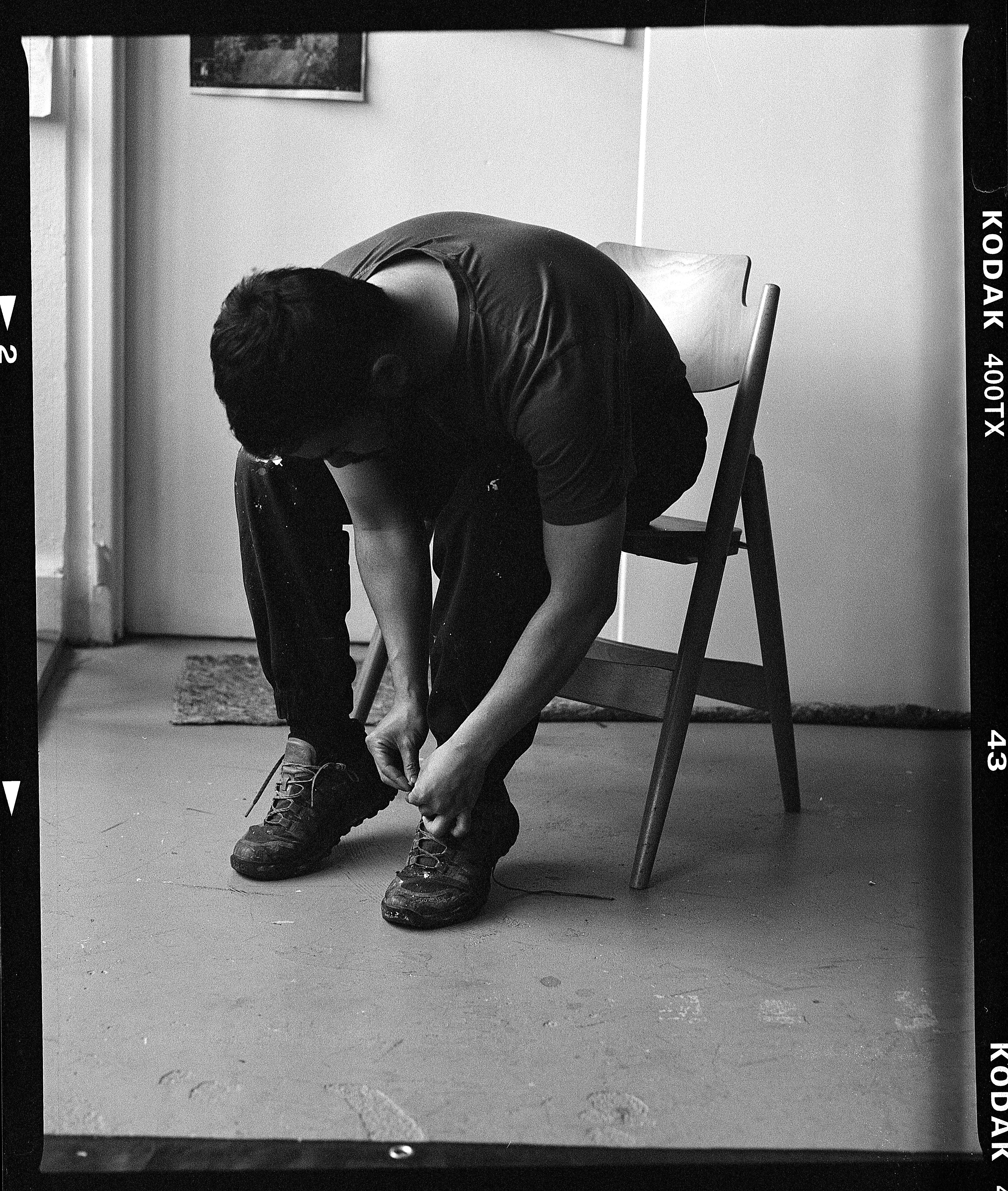 Berlin based, Japanese painter Shota Nakamura in his studio in Lichtenberg.